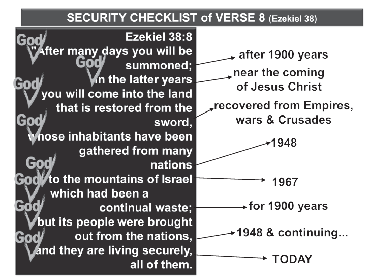 The amazing survival of Israel through wars, desolations, terrorists, intifadas, etc., etc., does not testify to their extreme UN- security. Conversely, these events “on the ground” are PROOF of Israel’s extreme SECURITY under God’s protective Hand. God says clearly that “I, declares the Lord, will be a wall of fire around [Israel]. Israel is not secure from ATTACK—they are secure from DEFEAT. [9] There is a big difference, and this is what Ezekiel 38 is talking about.