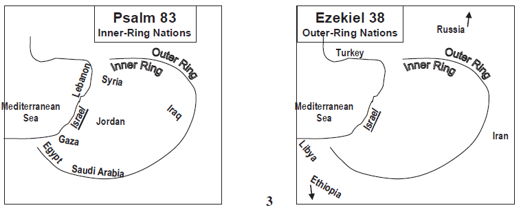 The Psalm 83 theory was generated on the assumption that since the nations listed in Psalm 83 are not named among the nations in Ezekiel 38’s description of the latter-day Magog Invasion of Israel (Eze. 38:1-7), then Psalm 83 must represent an entirely different event. Theorists see a contradiction when the two prophecies —the Inner Ring nations of Psalm 83, and the Outer Ring nations of Ezekiel 38— are seen as the same event. Yet, we have seen Biblical evidence that places the timing Psalm 83 war at the End of the Tribulation. This does not preclude the Psalm 83 nations as participants in the Magog War. There is good Scriptural evidence that they are in fact included in the Magog War.